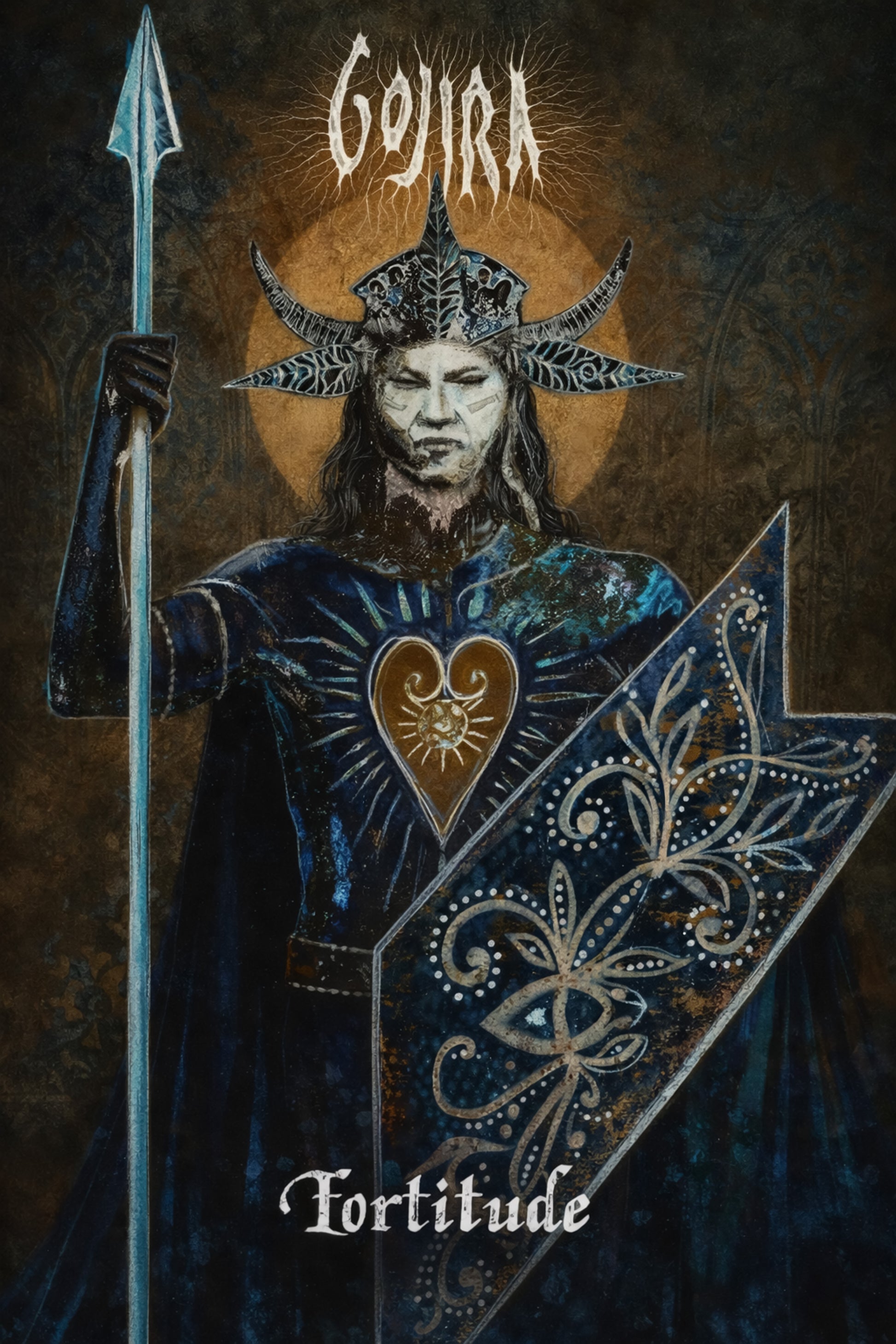 Keywords: Gojira poster, Fortitude poster, progressive metal album art, metal wall art print, symbolic music artwork, modern metal decor, band album poster, heavy metal wall art, music studio decor, alternative metal art, metal fan gift, ritual symbolism art, contemporary album poster, Gojira art print, music wall decor
